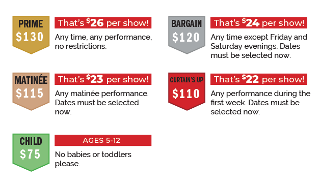 We offer standard ticket pricing, group rates, and Season Tickets. If you are looking for discounts, we highly recommend purchasing Season Tickets.